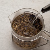 お湯を注ぐと、茶葉がゆっくり開いていく。