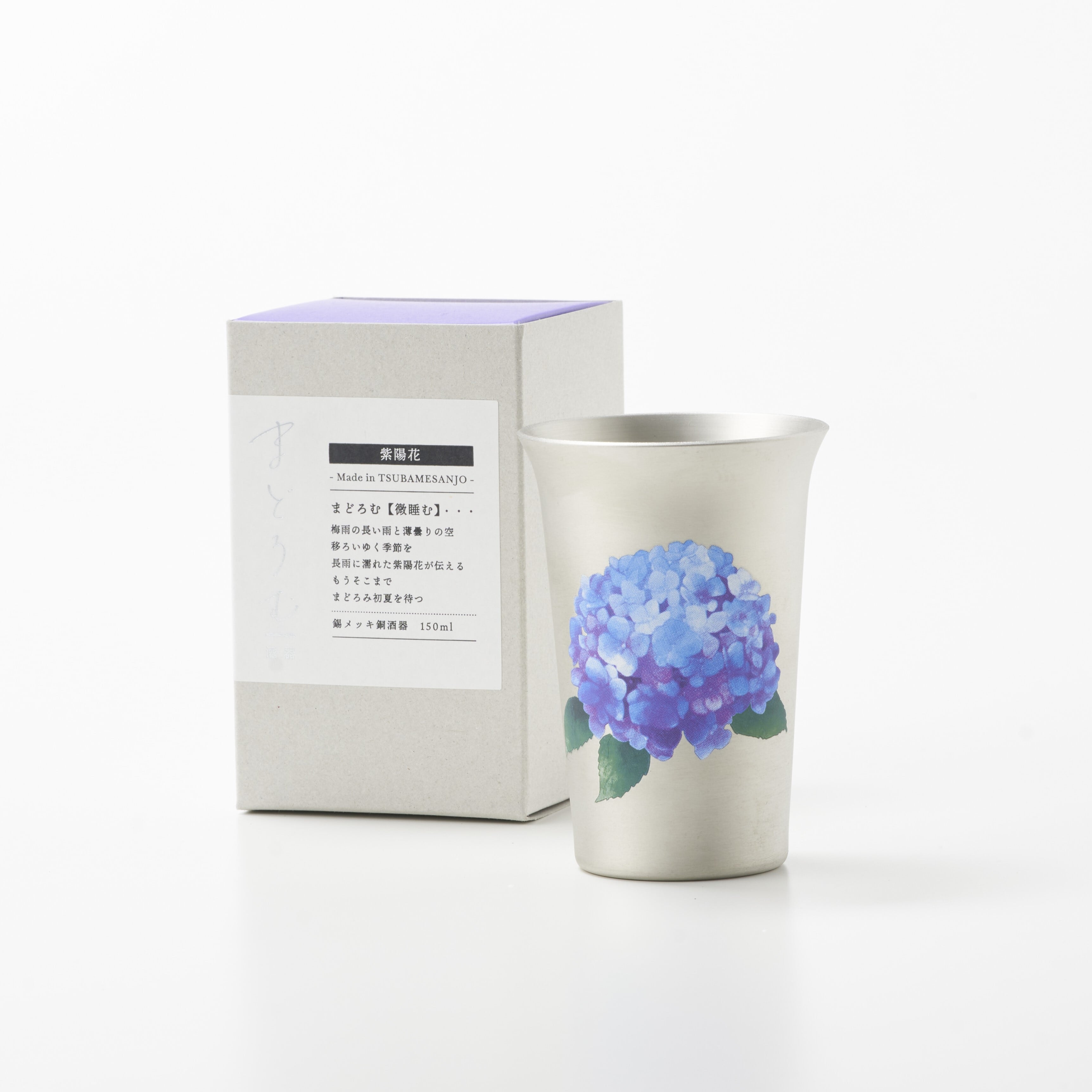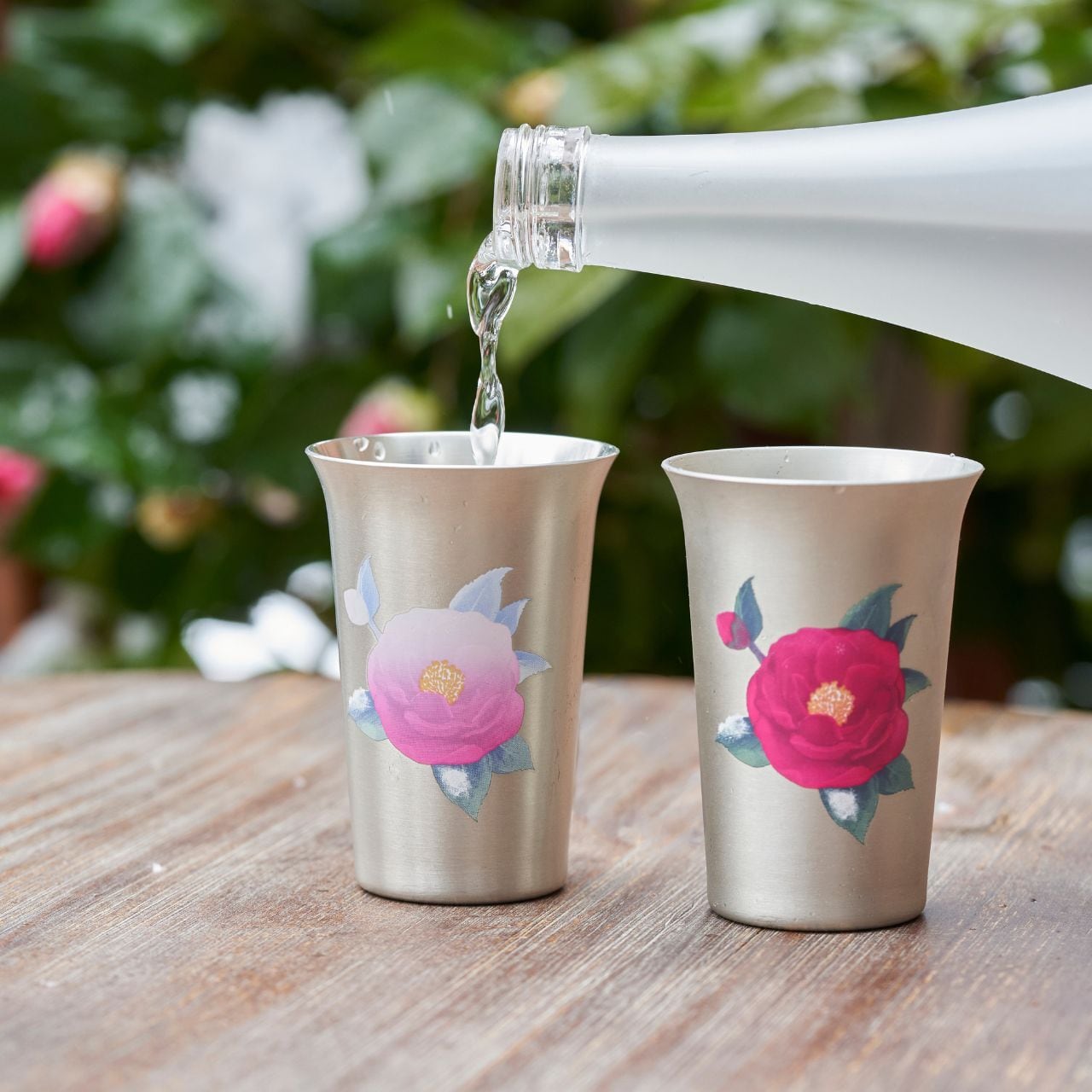 まどろむ酒器は、銅に錫でコーティングされた金属製の酒器に、約16℃以下の冷たい液体を入れることで絵柄が色づき季節の風物詩を愉しんで頂ける酒器です。