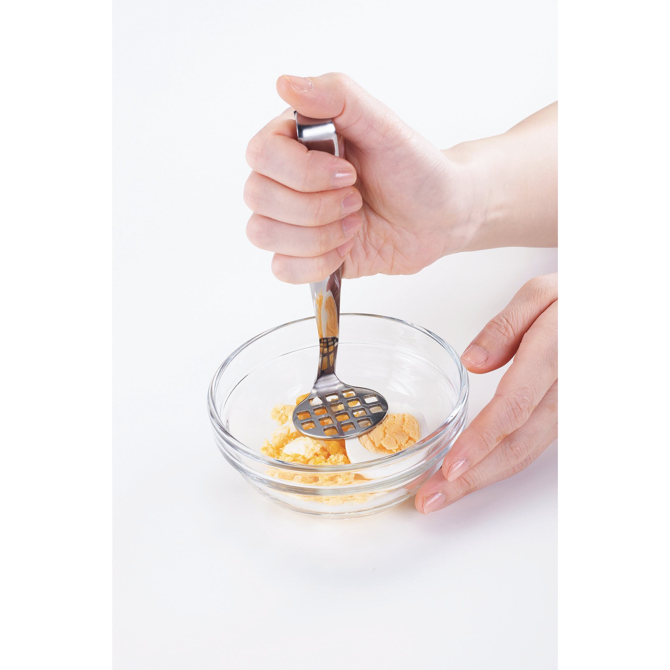 ポテトや卵をつぶすための道具としての「マッシャー」を究極にコンパクトに作りました!手のひらサイズで取り回しがよく、つぶし面がコンパクトなので小さい器、”ちょっと使いたい”シーンで活躍します。